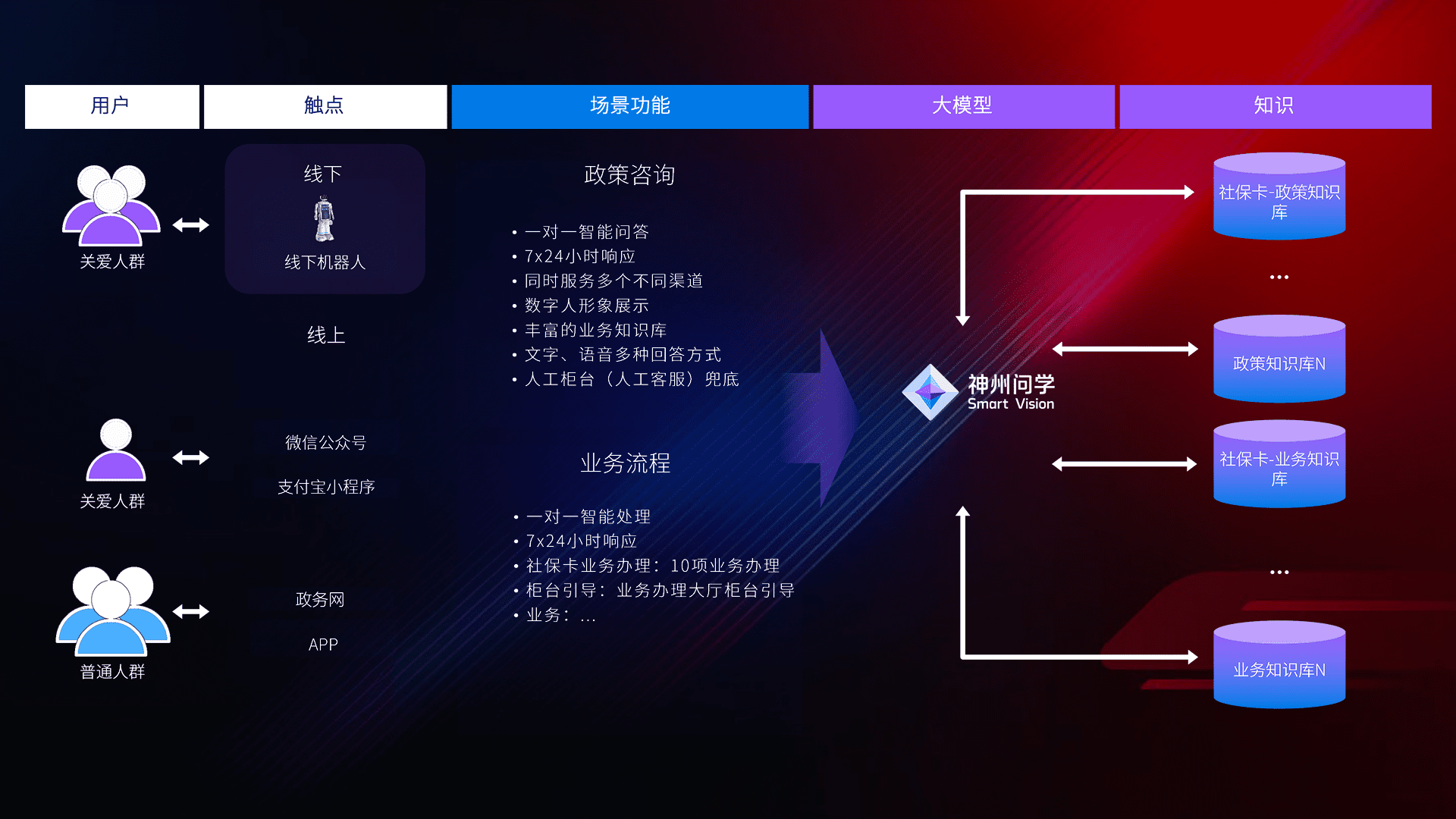 • 线上线下全覆盖:线上提供微信公众号、、支付宝小程序、、、、政务网、、、、app多种渠道,,与线下机器人形成完整服务体系。。。